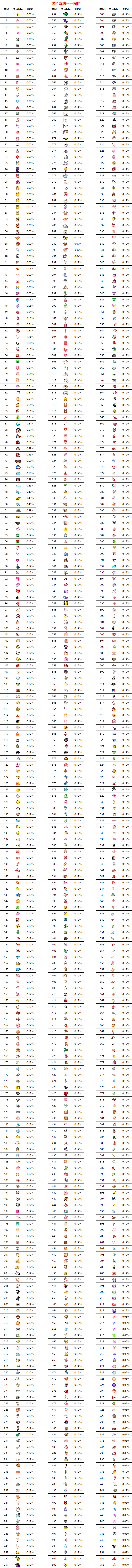 ?*以上所有概率为单人单次