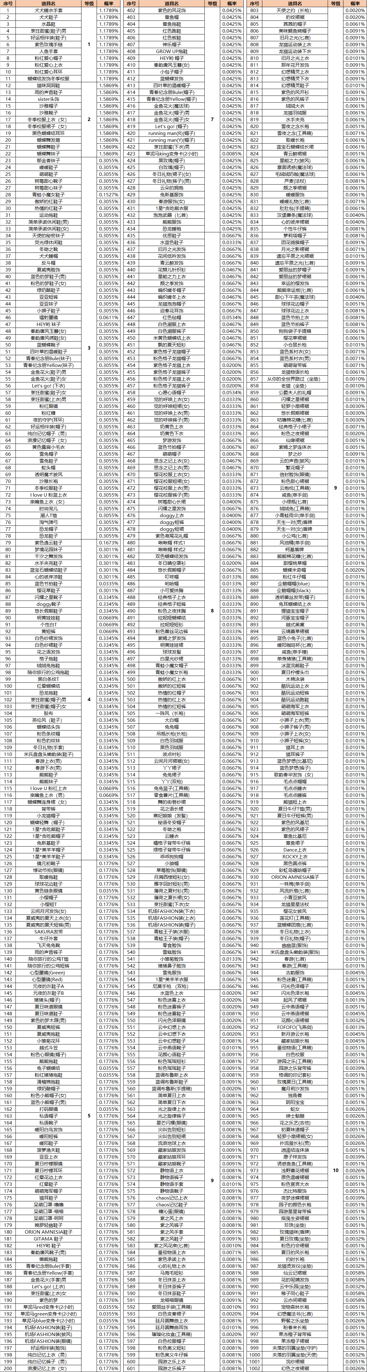 温馨提示:以上所有道具默认获得数量为1份